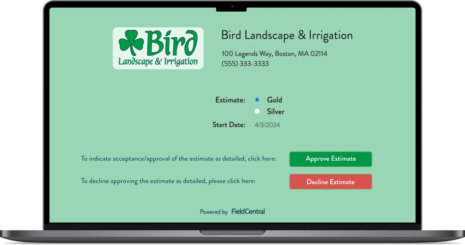Worrying about lost leads? What about that prospect waiting for a follow-up? Or maybe changing your prices before the season is taking up too much time? It happens, but not with FieldCentral. From updating your pricing for all your properties in one spot to effortlessly creating, sending, & tracking your bids, you'll have all the tools you need to eliminate your headaches.
